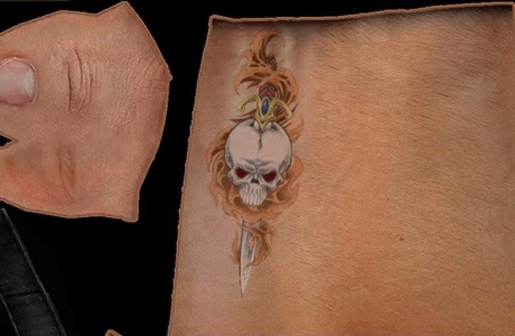 Well this is a flaming skull tattoo for your arms. Almost all of the tattoos i see on the site are in a tribal style, so i thought i'd make a cool colored flaming skull re-skin for myself, but of course you guys can have it too. All comments and crits are welcome. :)