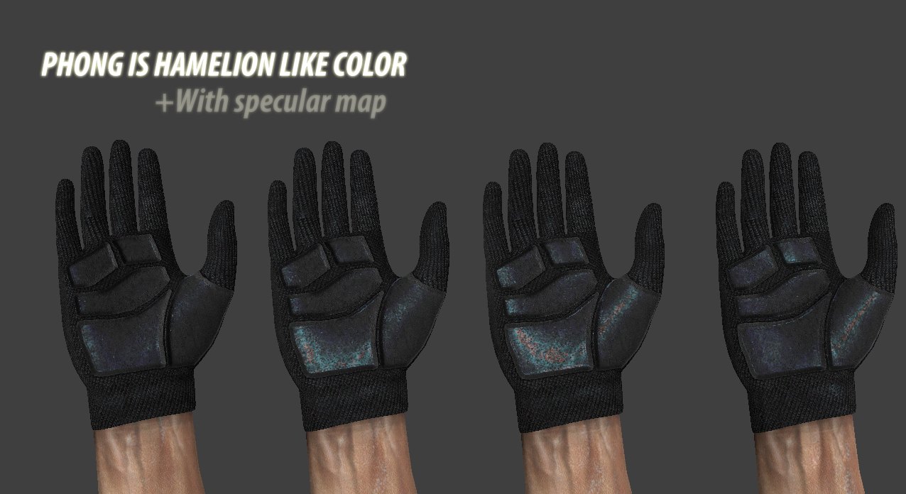 H E L L ololllolololololololo There is new skin,whith hamelion phong effect,protector surface on inside of gloves.It's a nice one,and u should try it in game.Its a first gloves skin with Phong warp effect... * ITS NOT A DOUBLE POST ITS a BIG DIFFERENCE BETWEEN! Phongwarp ligthing,edited normals,and different skin texture.So dont say that its SAme plz... MORE SCREENS FOR U WILL FIND INSIDE RAR.