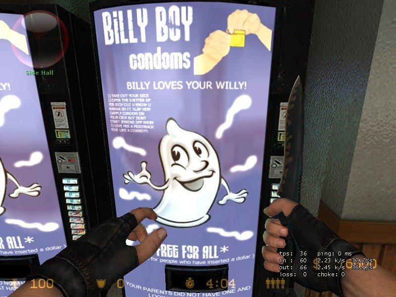 I hope you like it. Me and my good friend riko have made a billy boy condom machine. It has a reskin of the oringinal vending machine and has a completely new model and skin for the water bottle (which is now a condom)