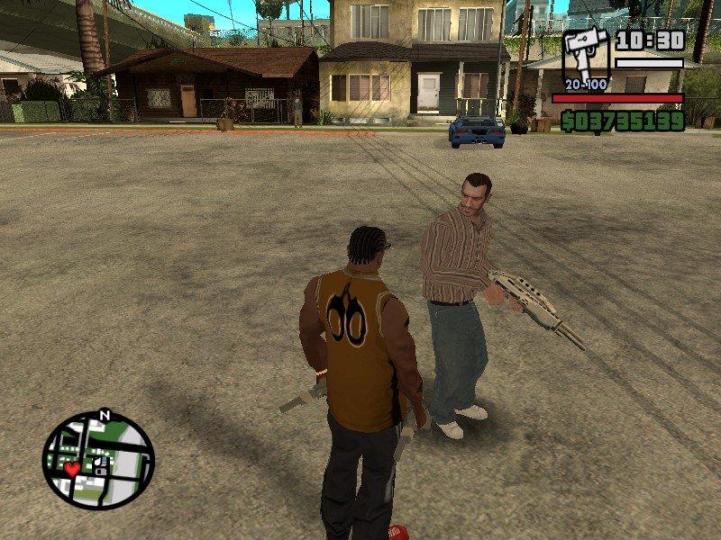 This mod will add 3 new models to SA. Niko from GTA IV and Tommy from VC and Claude from III. To spawn Tommy with a M4, press 'Shift' + 'Ctrl' (Tommy script must be installed)