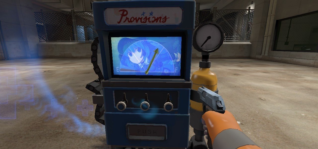 Это просто очень простой кожи экрана и стрелка, добавляя изображение Nitori(BLU)/Mitori(RED), из серии Touhou распылитель. Кроме того огурец стрелки.