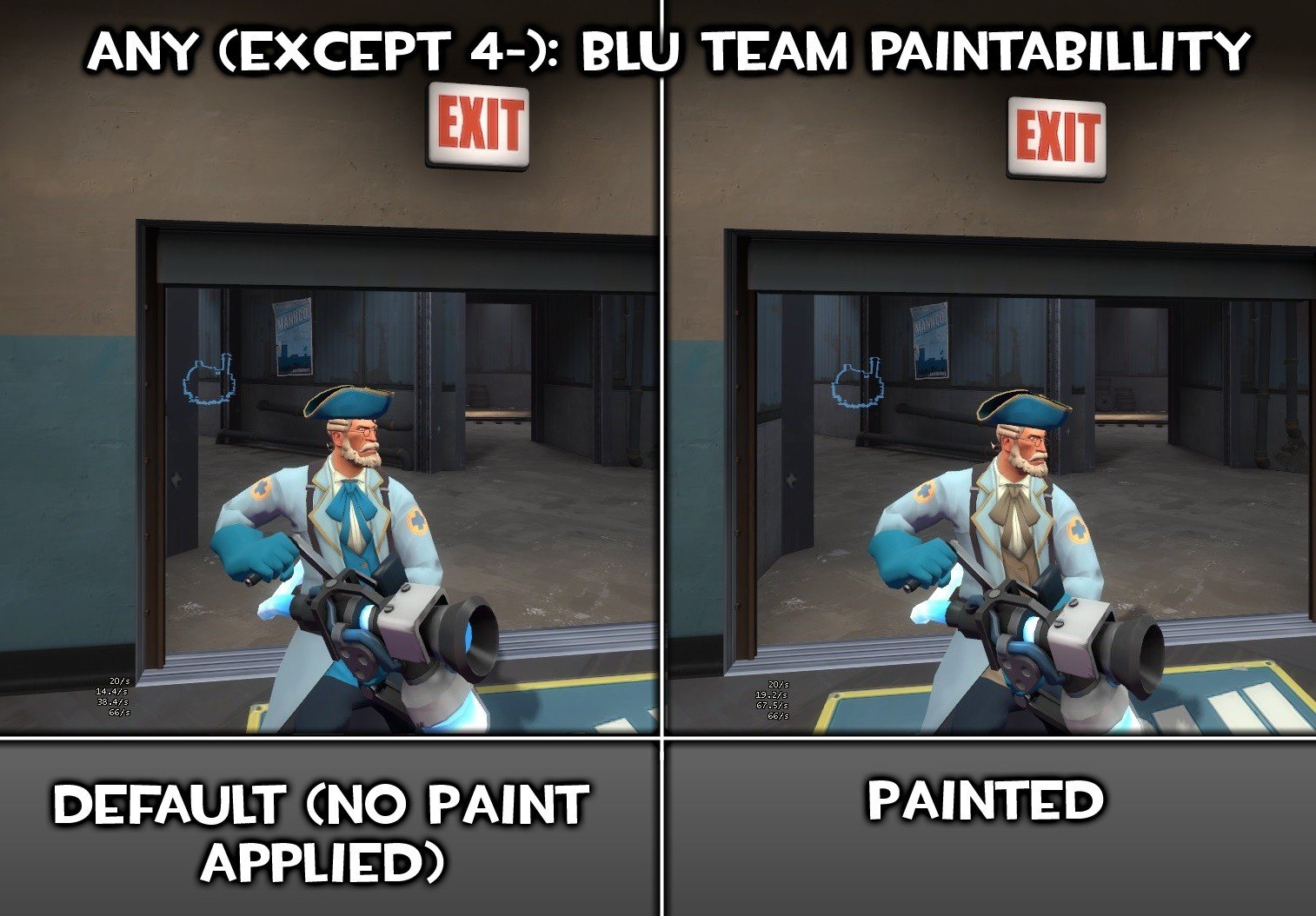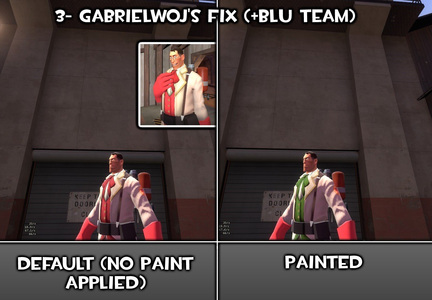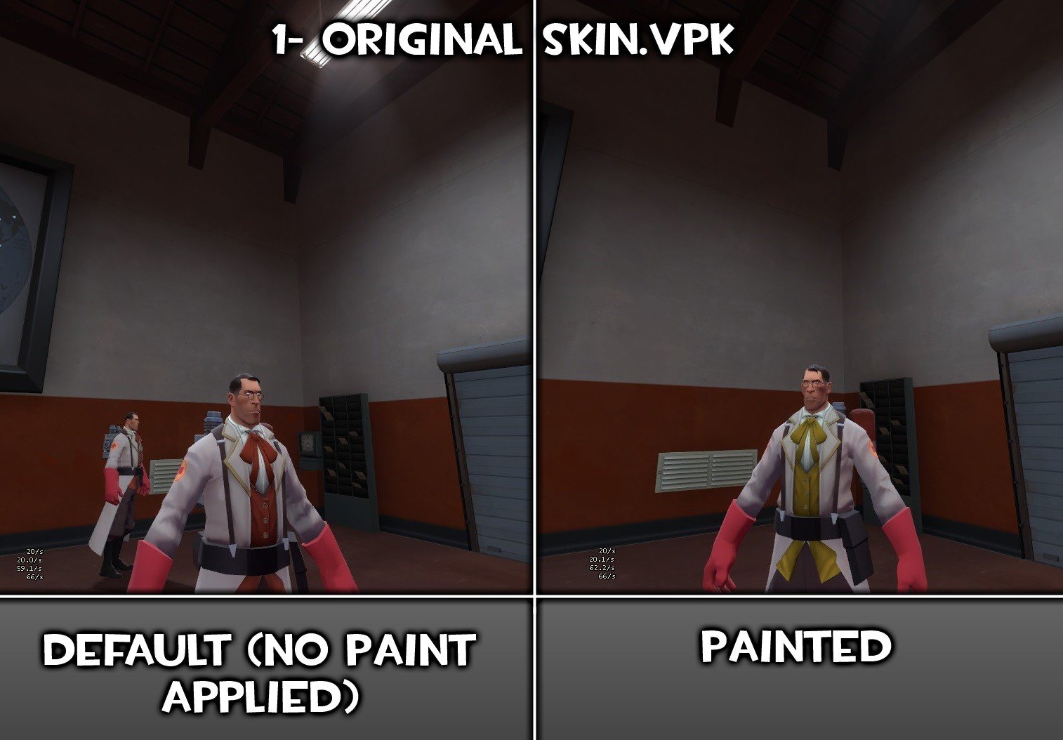I gotta say, I love the Maxof2D work on this model, but, valve removed the alpha to not have team issues (with Slate paint). Although, it was a piece of cake to re-put the alpha mask on it, but, what did take more, was the extras. I've made skins for fit the Powdered Practitioner hat, with RED team texture, and it does also include the alpha mask full paintabillity with my GAMEBANANA: Das Fantzipantzen Red Team - Color Fix [V2] (Team Fortress 2 > Skins > Cosmetics).