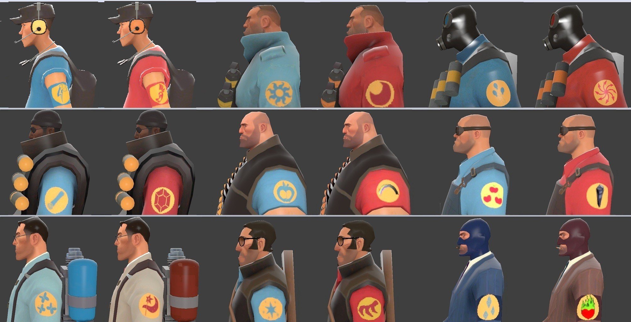 Это сильно тонированные вниз версия моей более красочным команды пакета. После того, как солдат outed его как шкаф brony, маг Merasmus проклят обе команды наемников с пони тематические краска рабочих мест и единообразных патчи как месть за последующие дразнить. Солдат BLU особенно недовольны о договоренности.