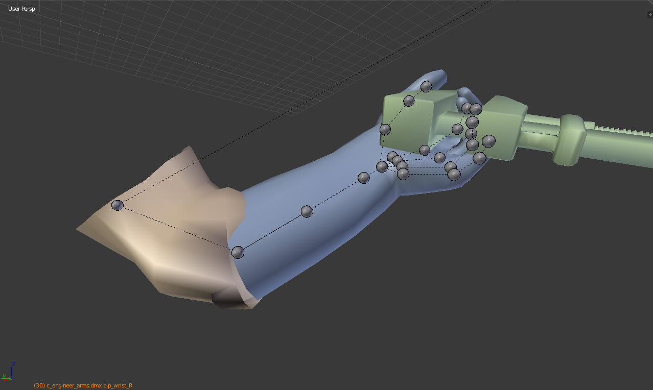Я знаю, что рубашка инженера-то клипы внутри его руку в ружье анимации, но это главным образом потому, что Valve ужасные моделирования/фальсификации. Вот скриншот клапан в анимации, страдает от то же самое (это слишком большой для этого маленький).