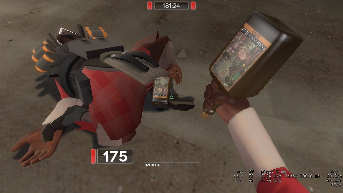 "Aye, me bottle o' scrumpy!" - Demoman about the Rum Scrumpy.
