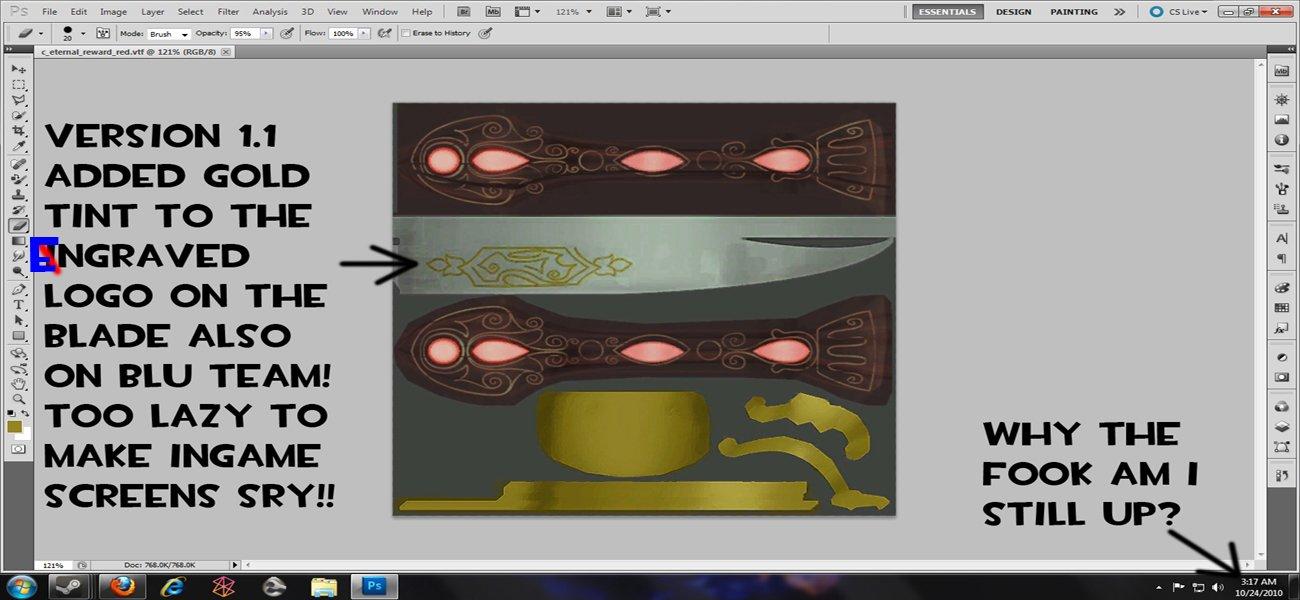And the pretty filters are brought to you by Adobe CS5. NONE USED ON KNIFE BASIC RECOLORED SKIN DONE